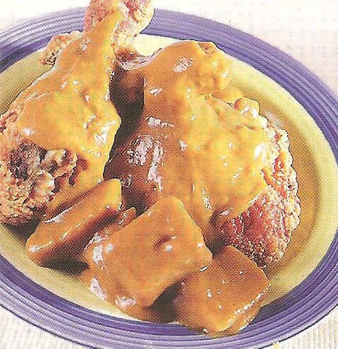 Season ½ kilo chicken with salt and pepper. Fry in hot oil until tender and golden brown. Set aside. Heat 1 pack S&B Golden Curry Sauce with Vegetables following package directions. Serve with the fried chicken.